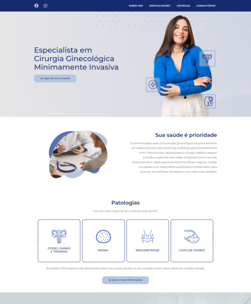 Meu foco não é apenas estética, mas criar estruturas que transmitam credibilidade, organizem informações e facilitem a captação de pacientes — sempre respeitando o Código de Ética Médica.